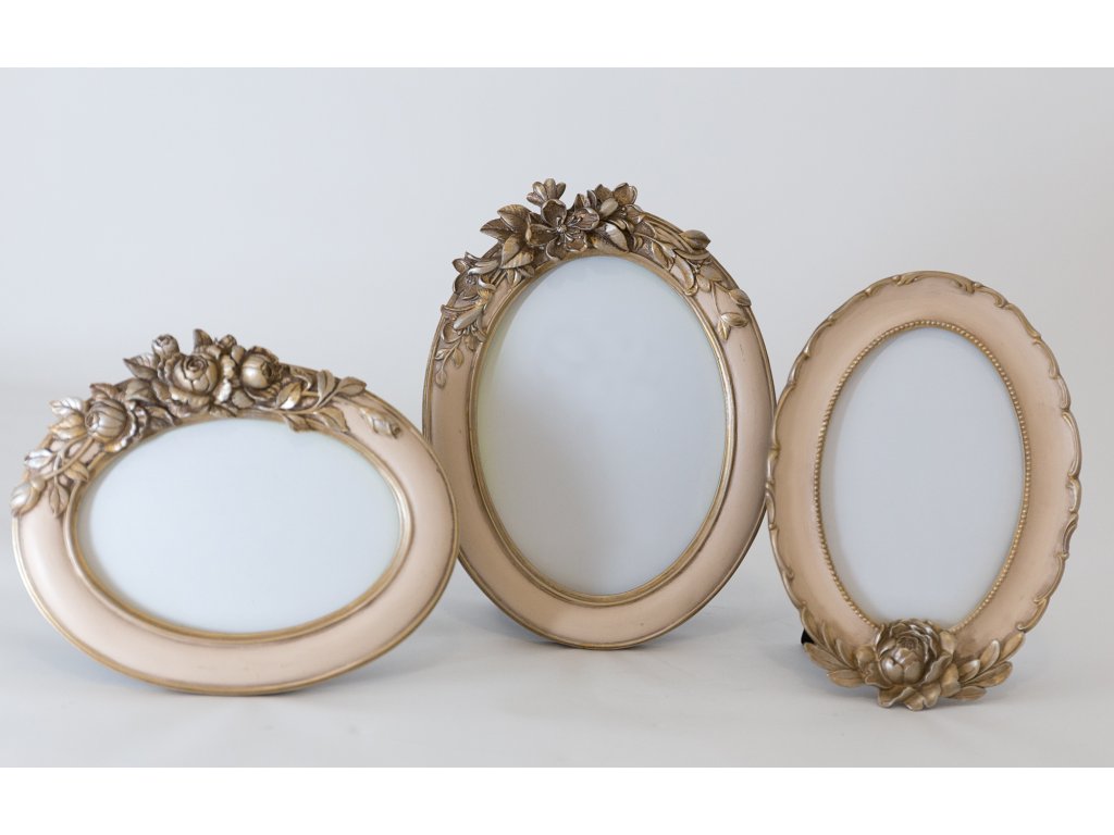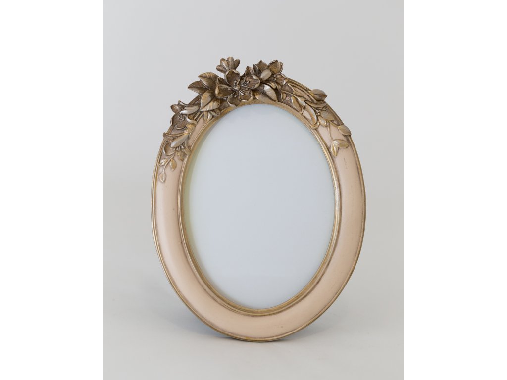 Stojací oválný krémový rámeček se sklem pro fotografii 25×20 cm.