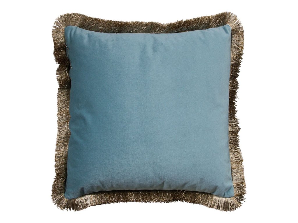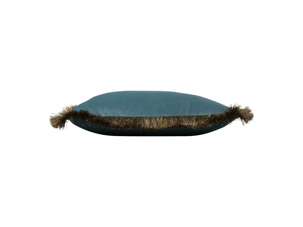 Set 2 ks tyrkysových polštářů ze syntetického sametu s hladkým povrchem, zdobených zlatými třásněmi doplní barevně váš interiér. Zavírání na zip, polštáře jsou včetně výplní.
